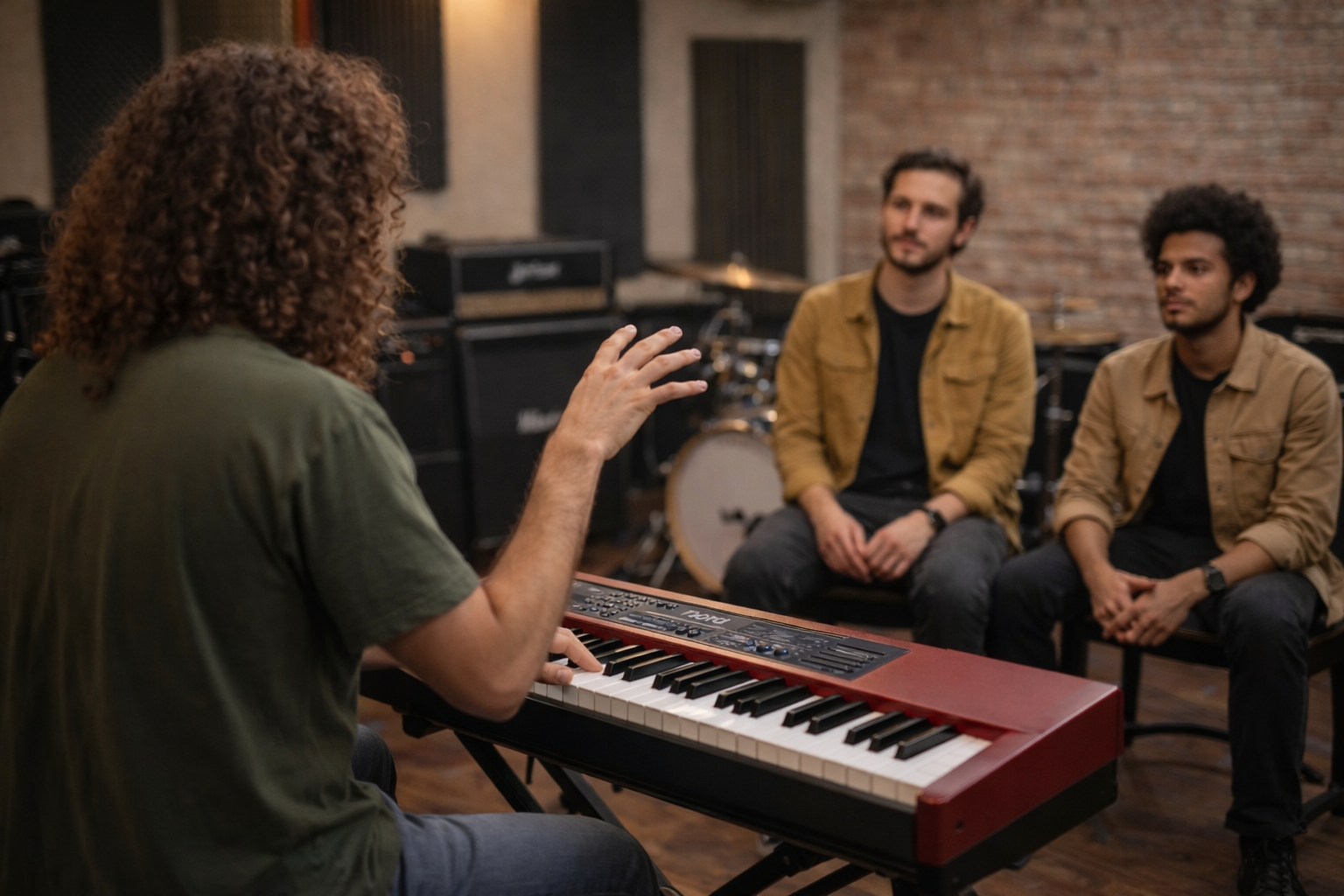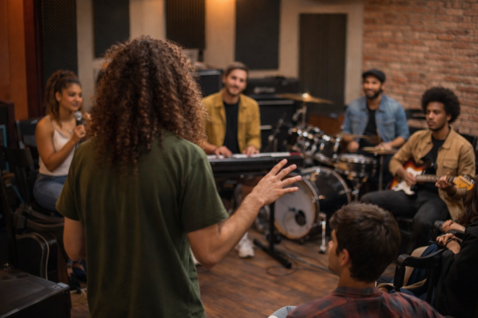 Vení a tocar, aprender y crecer junto a otros músicos. Ensambles de música para músicos que quieren dar el siguiente paso. Descubrí cómo se siente tocar en grupo, improvisar y encontrar tu sonido. Conocé gente, ganá confianza y aprendé haciendo música en vivo. Clases semanales, repertorio guiado y la experiencia de tocar juntos. Ideal para músicos principiantes e intermedios que quieren sonar mejor en banda.